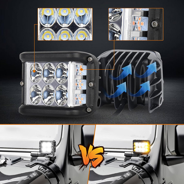 Jízda v noci nebo za mlhy může být náročná. S výkonným 6W LED výkonem a barevnou teplotou 6000K + 3000K tato světla poskytují výjimečný jas a zlepšují viditelnost, což zvyšuje vaši jistotu a bezpečnost na silnici.