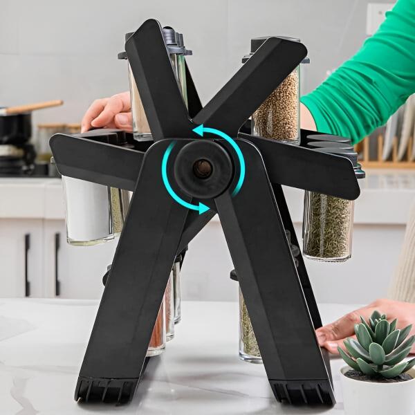 Snadný přístup k vašemu koření! Otočný stojan na koření se plynule otáčí a umožní vám okamžitě najít nádobu, kterou potřebujete.