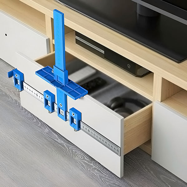 Ať už instalujete úchytky skříněk, výsuvy zásuvek nebo provádíte přesné úpravy nábytku, tato šablona je dostatečně univerzální, aby zvládla různé úkoly při renovaci domácnosti a kutilské práce. Je ideální pro kuchyňské skříňky, šatní skříně, a dokonce i pro truhlářské projekty.