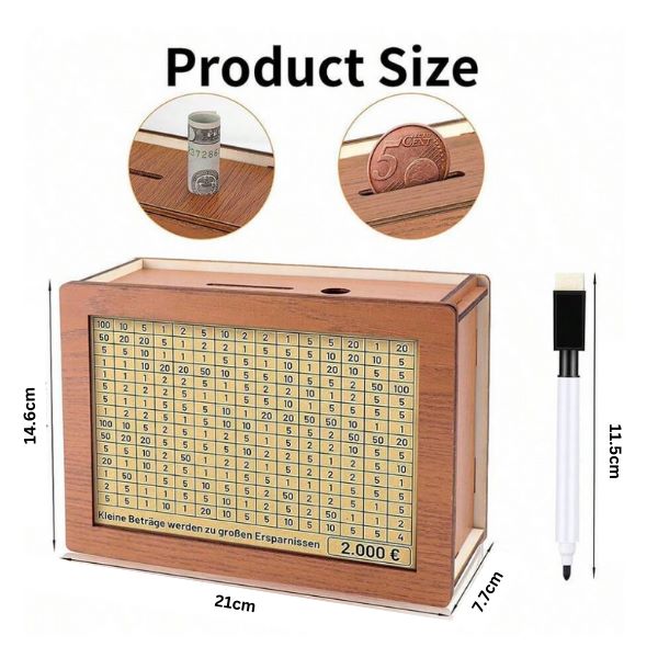 1 x Dřevěná krabička na peníze COINSAVE