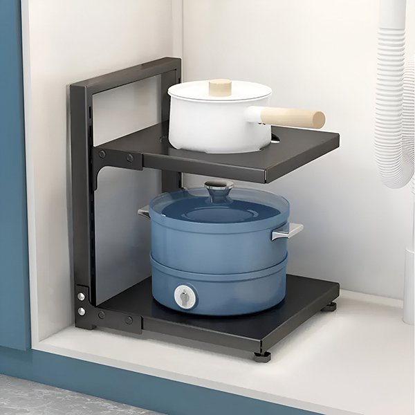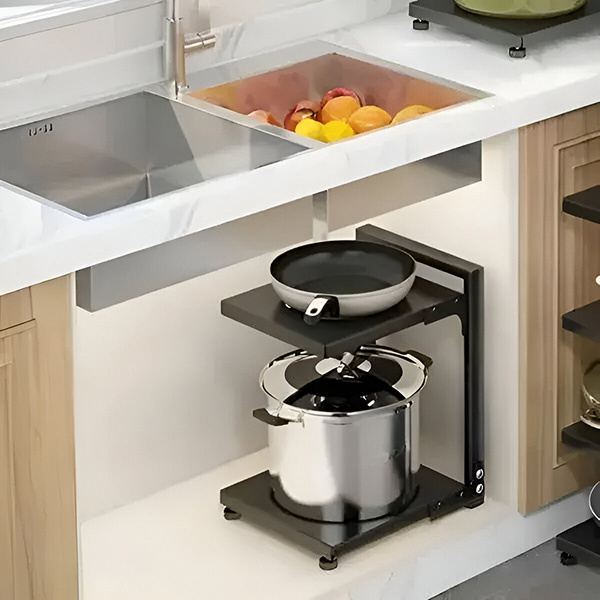 Uspořádejte si kuchyň s lehkostí! Tento stojan na hrnce se dvěma policemi se hodí do každé skříňky a je ideálním řešením pro pořádek v kuchyni.