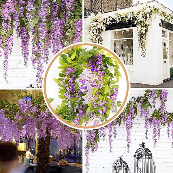 Nemusíte se zabývat liánami nebo květinami, které vadnou a uvadají. Naše simulace vistárie je vyrobena z vysoce kvalitního hedvábí a pružného plastu, což zajišťuje, že si navždy zachová svou vitalitu. Tyto odolné květiny jsou navrženy tak, aby vydržely, a poskytují vám krásné a trvalé řešení dekorace.