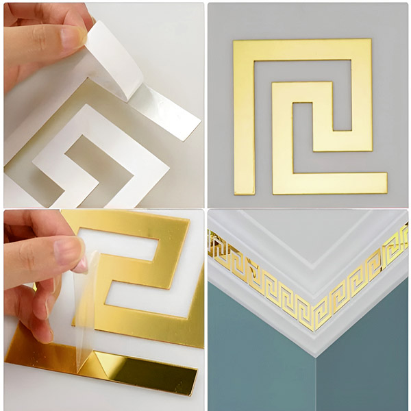 Žádné nářadí, žádný nepořádek – stačí sloupnout a nalepit! Samolepicí podklad umožňuje snadnou instalaci těchto zrcadlových samolepek na jakýkoli hladký povrch. Pro dosažení nejlepších výsledků odstraňte ochrannou fólii, abyste odhalili skutečnou krásu reflexního povrchu.